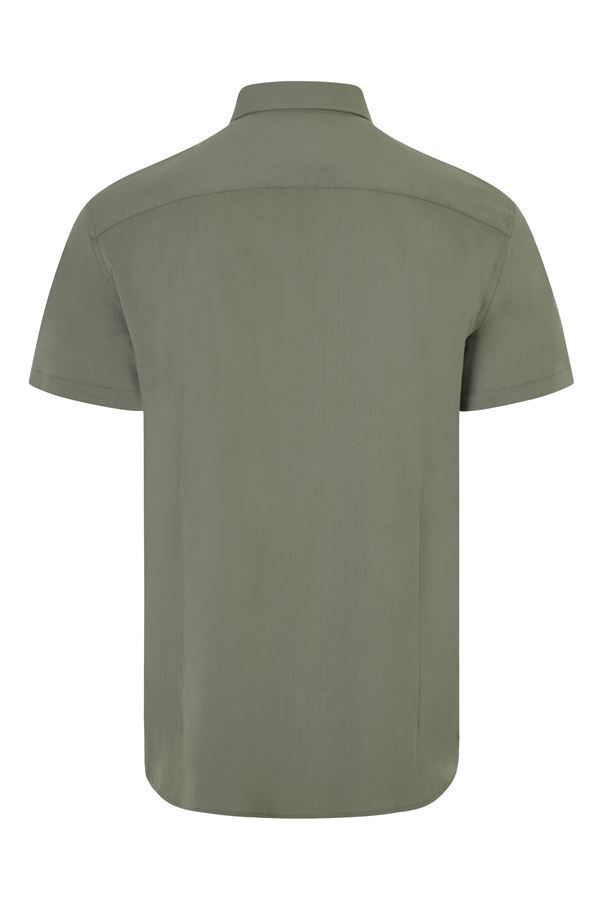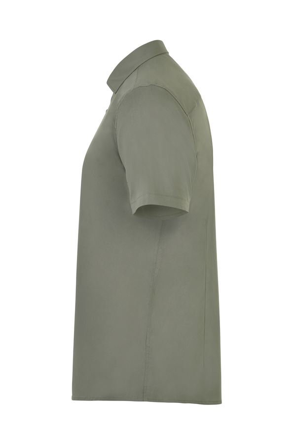 Camisa de manga corta con tejido elástico y diseño entallado. Estilo y funcionalidad para el día a día en hostelería.