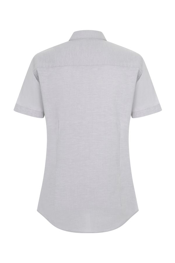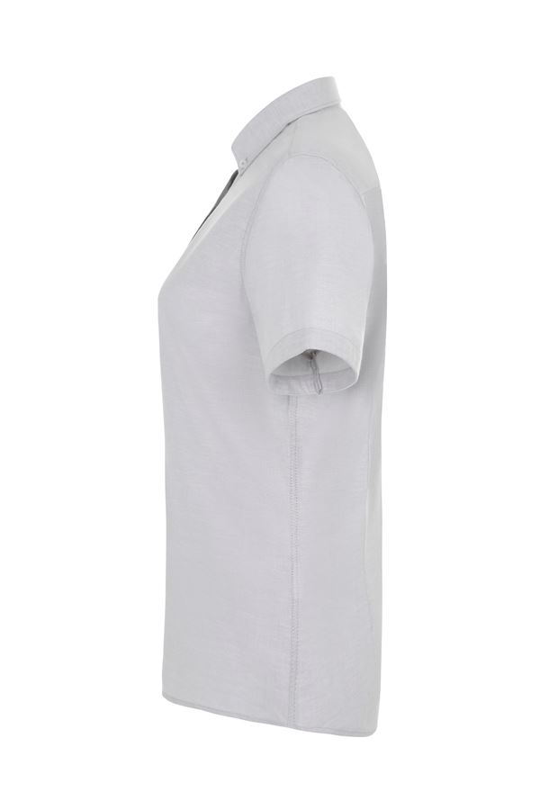 Camisa de manga corta en tejido oxford stretch. Comodidad, ajuste femenino y elegancia clásica para profesionales de la hostelería.