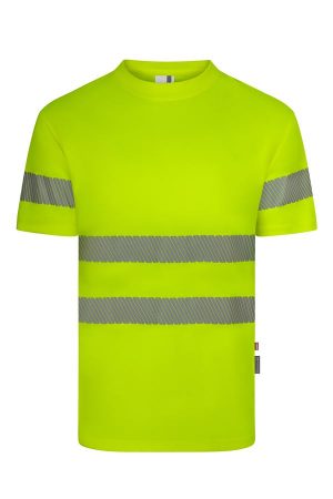 Camiseta técnica de manga corta en poliéster reciclado con cintas segmentadas. Alta visibilidad clase 2, protección solar UPF 50+ y certificado GRS.
