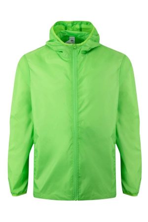 Cortavientos ligero y funcional, ideal para protegerse del viento y la humedad en actividades exteriores o como prenda promocional compacta.