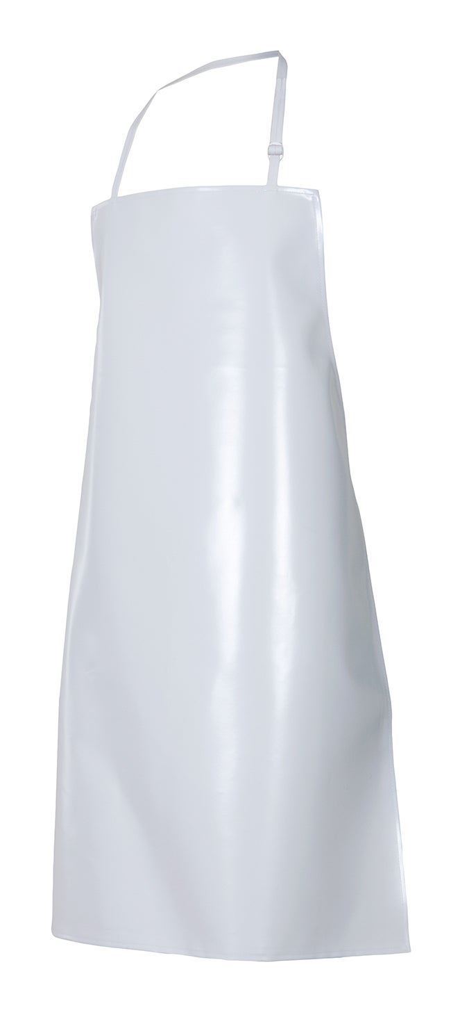 Delantal peto impermeable en PVC (470 g/m²) con hebilla ajustable al cuello y dos tiras laterales. Resistente, duradero y fácil de limpiar.